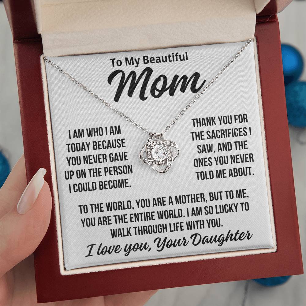 To Mom From Daughter "You Are The Entire World..." Love Knot Necklace